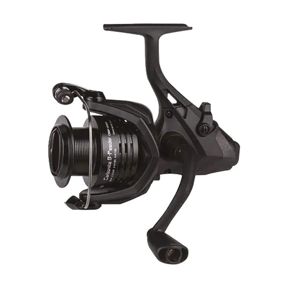 Okuma Carbonite B-Feeder Spinning Reel features auto-switch freespool system, corrosion-resistant graphite body, and quick set infinite anti-reverse system.