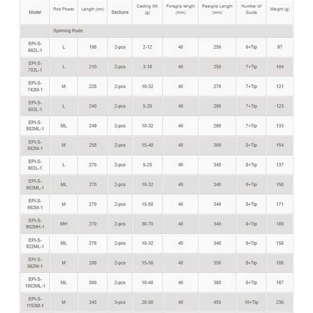 – 24T and 30T carbon blank construction with solid carbon tip.
