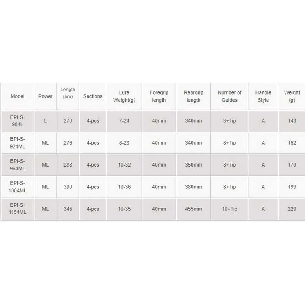 – 24T and 30T carbon blank construction with solid carbon tip.