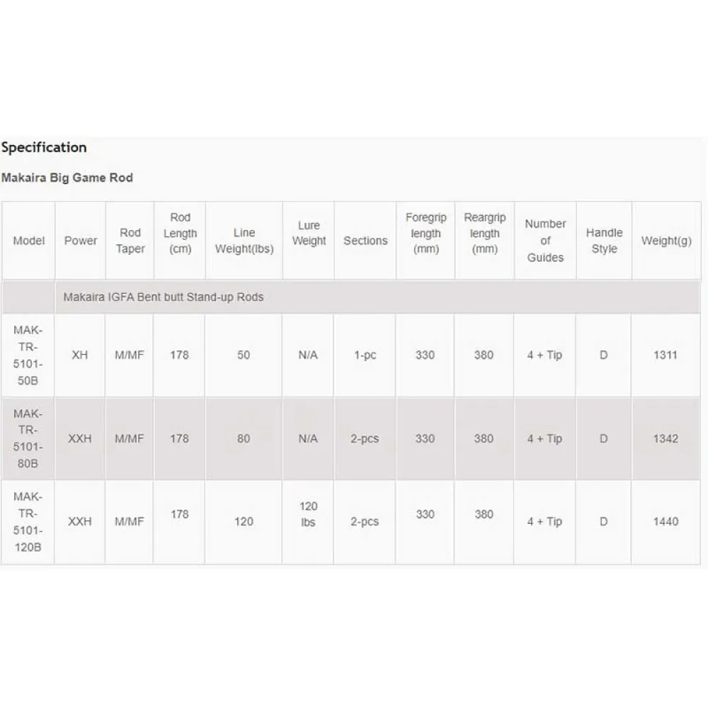– IGFA tournament rods with full straight or bent aluminum rod butts